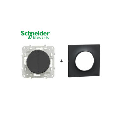 Interrupteur double va-et-vient anthracite et plaque de finition Odace...